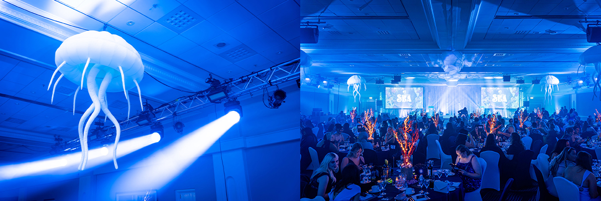 Each year Banana Moon’s annual awards wow attendees! Planned to perfection, each tiny detail comes together to create a full themed room. With a new year, comes a totally new & exciting theme to dazzle attendees! For 2025 the creative team at event agency Denfield dove deep for their newest event theme – Under The Sea! “We try to fully immerse ourselves in each theme and make sure it flows through everything we do, from the invites, to bubble water tubes on stage and flooding the room with bubbles!” said event organised Mike Colledge from Denfield.
