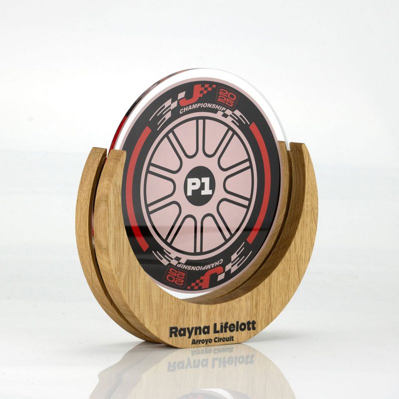 This dual-layered award combines the warmth of premium 12mm solid oak with the sharp clarity of 5mm thick 100% recycled acrylic. Every oak panel is responsibly sourced from certified European forests and hand-finished with satin wood oil and wax.