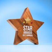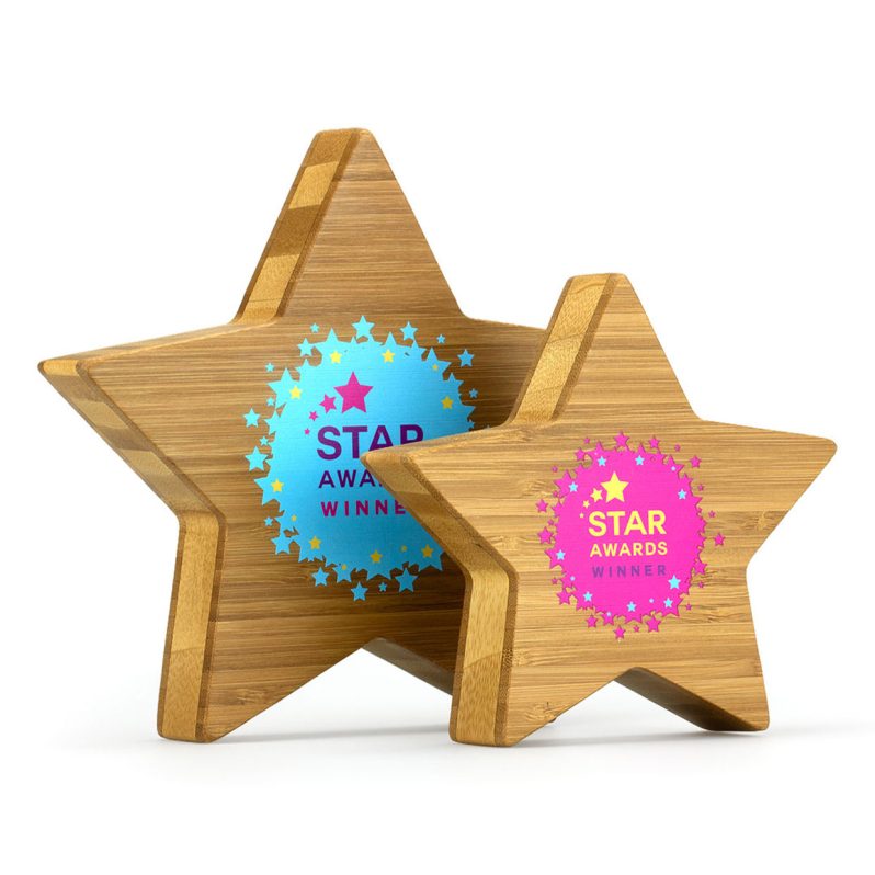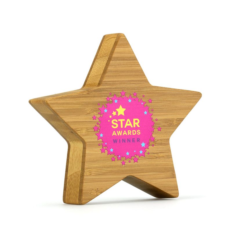 Star trophy in a choice of two sizes and three mellow woods: oak, cherry and bamboo. Responsibly sourced, individually unique and 100% recyclable.