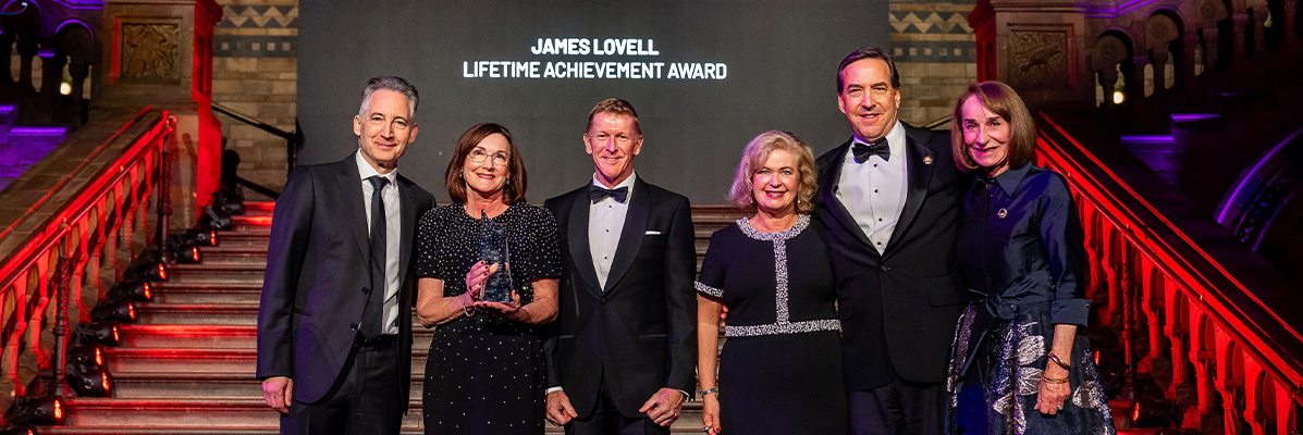• Lifetime Achievement Award: Captain Jim Lovell, accepted on his behalf by members of his family in recognition of his historic contributions to human spaceflight and enduring leadership in the global space community.