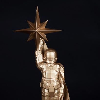 A creation inspired by orbital elegance and cosmic precision – its design celebrates humanity’s growing connection between Earth and the Stars. More than a symbol, it embodies inspiration, exploration, and global collaboration – the unity and diversity driving us forward into a new era of Space. The stunning award came to reality as a 3D printed model with a bright gold metallic finish & weighty black anodised aluminium engraved base.